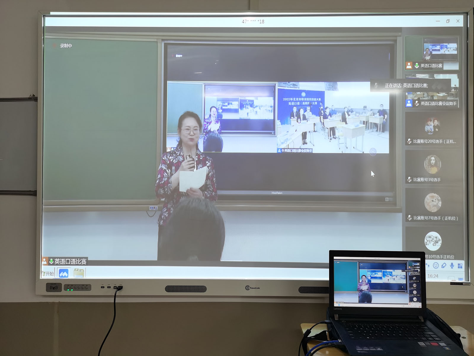 2022年4月22日,我院体育保健与康复专业2020级学生马文多(指导教师:彭小南),2021级学生白益凡(指导教师:王若曦)参加了北京市职业院校技能大赛英语口语竞赛,展现了我院学生的良好风采。此次比赛共有来自北京市的19所高职院校共40名选手参赛。比赛采用线上方式进行,经过“中国故事”和“情景交流”两个环节的激烈角逐,马文多同学荣获第九名。